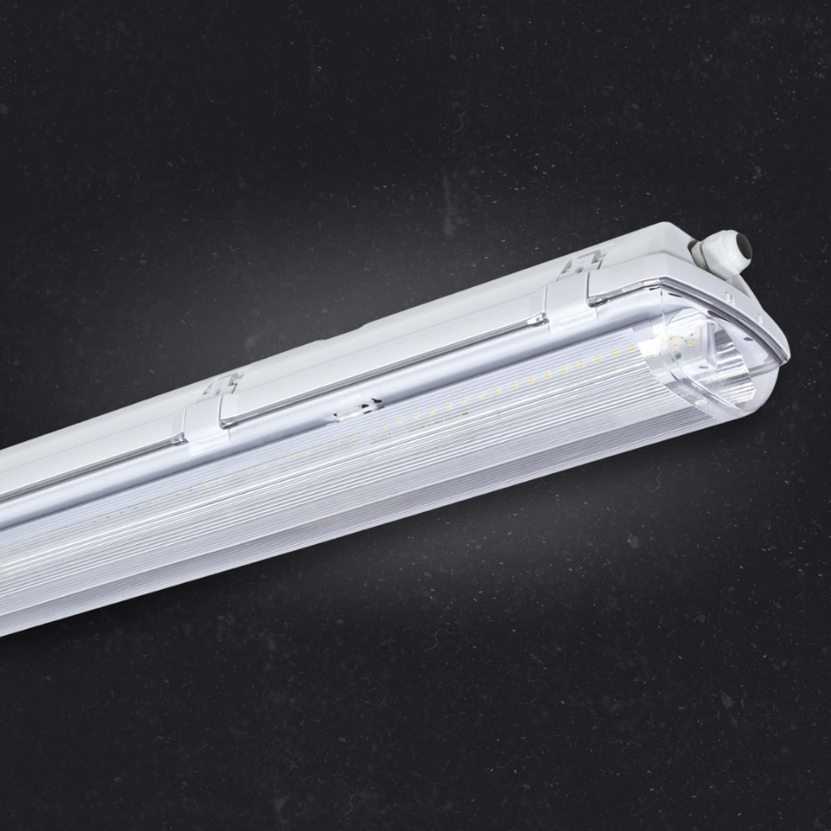 Plastic industrial LED light fitting, with diffuser made of translucent polycarbonate. The light fitting is suitable for industrial indoor and…