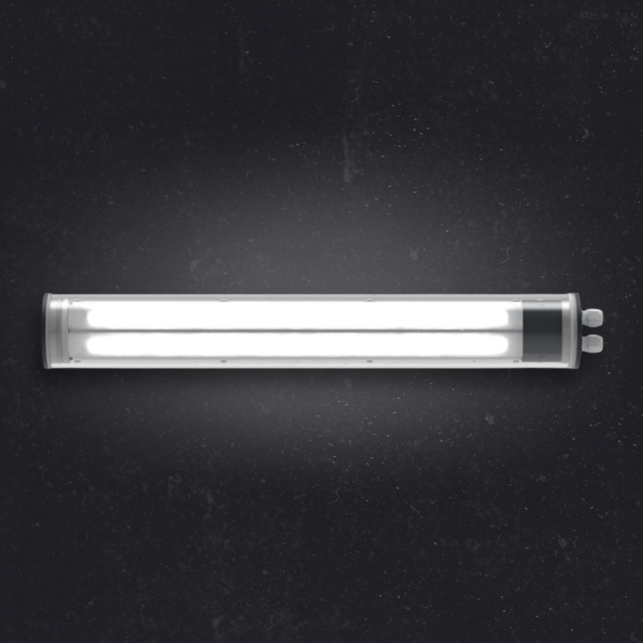 Tubular waterproof light fitting with LED modules. The light fitting has very high ingress protection class – IP69K. The diffuser is made of borosilicate glass, polycarbonate or polymethyl methacrylate. Additionaly the light fitting is equipped with special optics which provides the propagation of light.