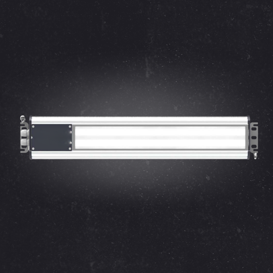 Waterproof and dustproof industrial lighting fixture with LED modules. The housing is made of anodized aluminum, end-caps and inspection flap made of powder-coated aluminum, and the lampshade made of tempered glass, polycarbonate or PMMA. The fixture can be equipped with additional functions: A3S emergency power supply, adaptation to work with a central battery ZB, DALI control system, control via Bluetooth BT, as well as the LED CLO module saving function. The product has CNBOP approval no. 5062/2023