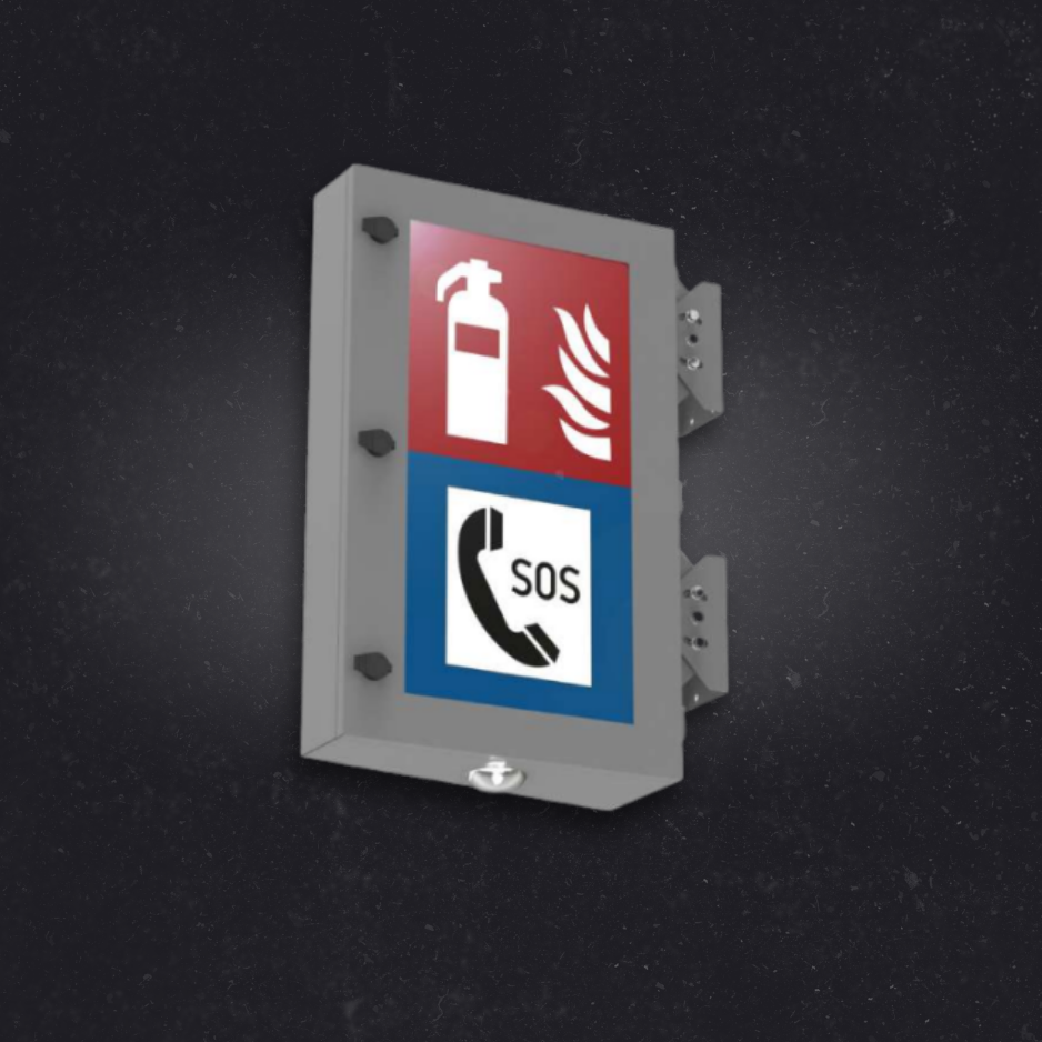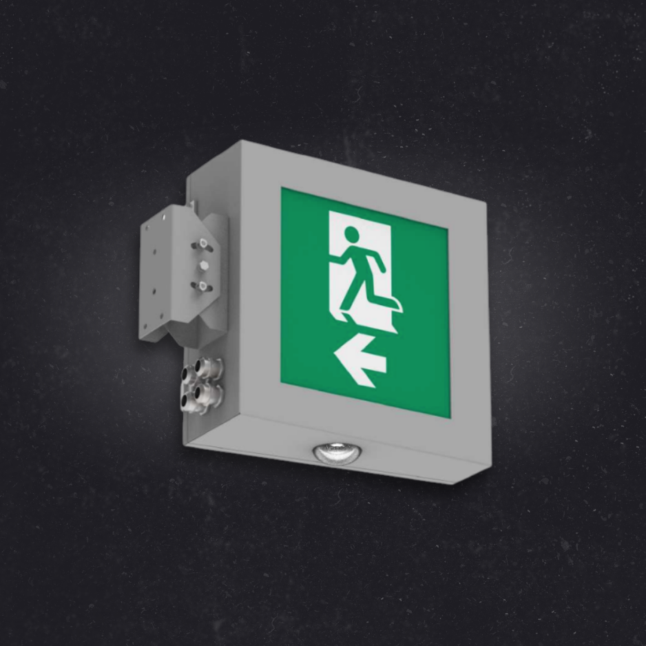 Evacuation luminaire for car tunnels. Designed to illuminate a pictogram with information about the evacuation exit or another type of emergency equipment in the tunnel. It also has a stroboscopic module that helps find the evacuation exit, even in conditions of heavy smoke. The housing is made of stainless steel, while the lampshade is made of tempered glass. The luminaire has CNBOP approval no. 4376/2021